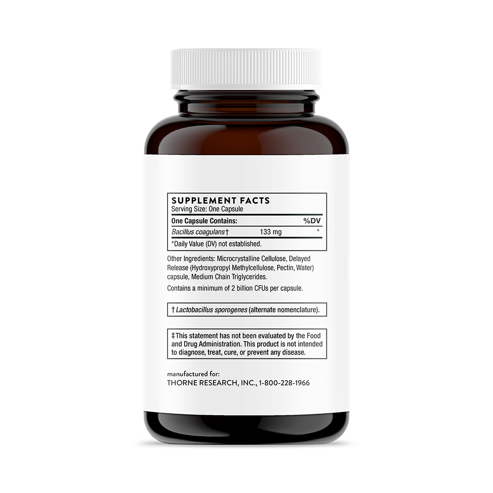 Bacillus coagulans (also known as Lactobacillus sporogenes) is a lactic acid-producing bacteria that is unique in probiotic supplementation.* While this beneficial bacteria is dormant in the bottle, it reverts to a growing bacteria in the intestines.* As a result, it resists being killed by stomach acid; in contrast, many Lactobacillus probiotics lose much of their potency before use and do not survive their transit through the stomach.*